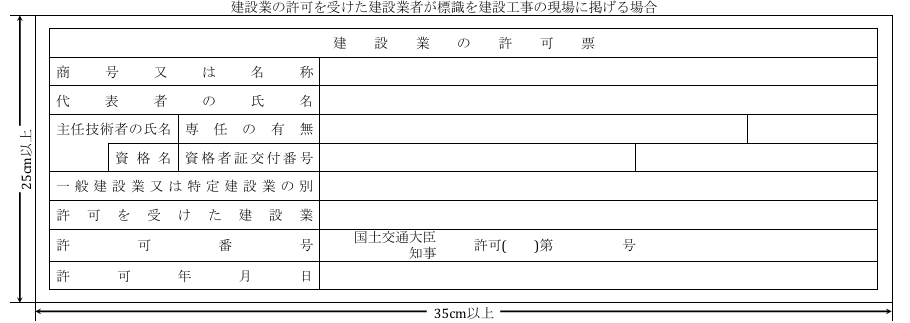 建設業許可票のサイズについては、建設業法施行規則により基準が定められています。