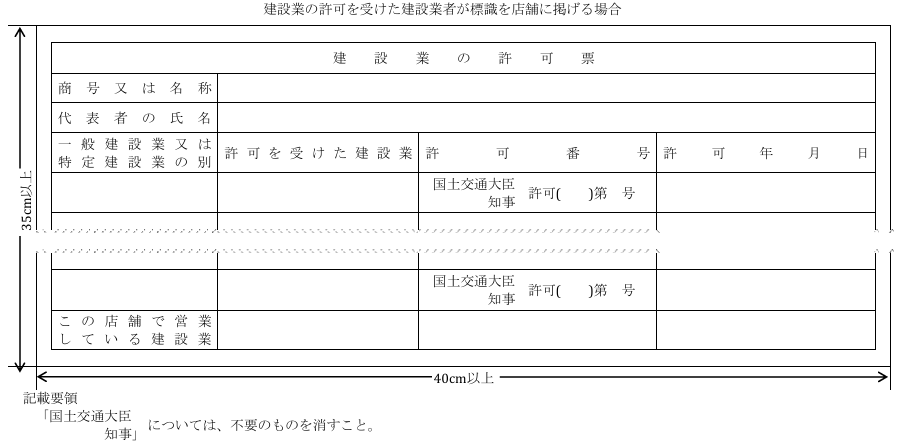 建設業許可票に記載すべき事項